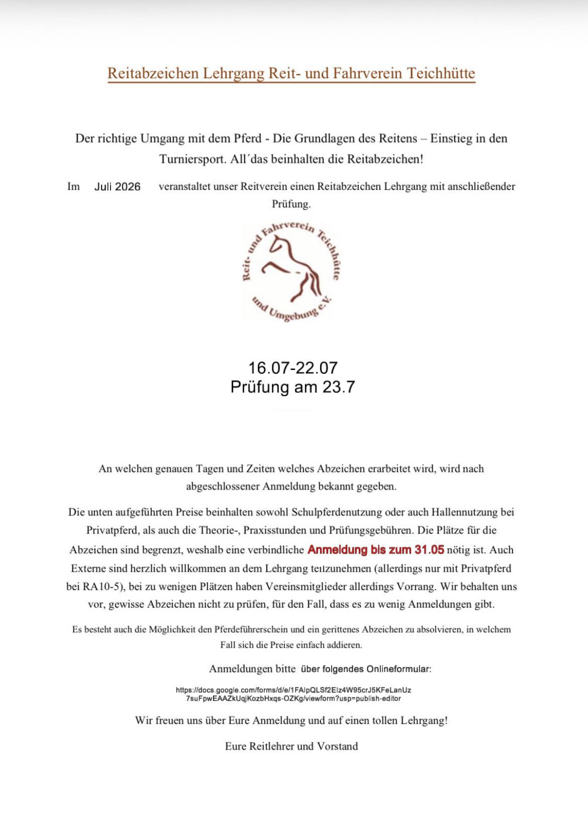 in diesem Jahr ist es wieder soweit und wir bieten wieder verschiedene Reitabzeichen-Lehrgänge an! 📚